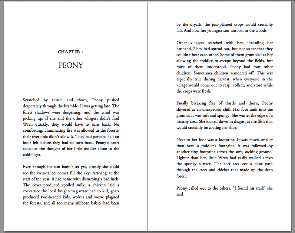A sample of a chapter. (For some reason the footers aren't showing. I'll have to fix that.)