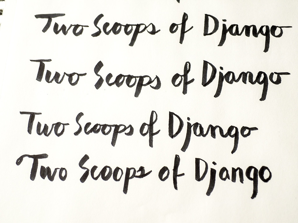 For the entire Two Scoops of Django series, I've worked first in pen and ink. This gives the letters a slightly wobbly feel.