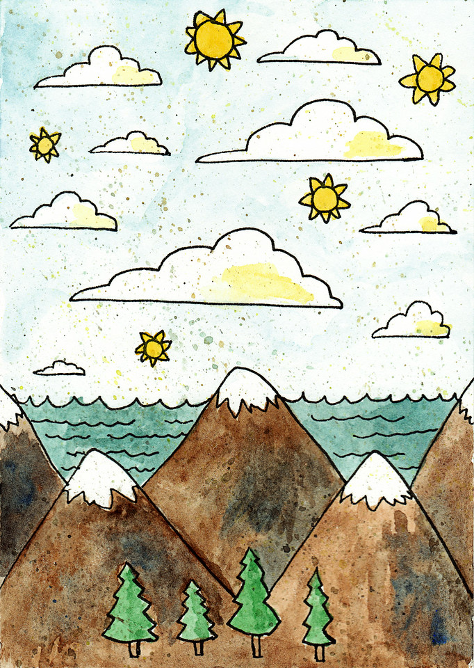This is another piece inspired by Tolkien's illustrations. I wanted it to be a scene from another planet, though, so I gave it five suns and tried to make the land a bit otherworldly.