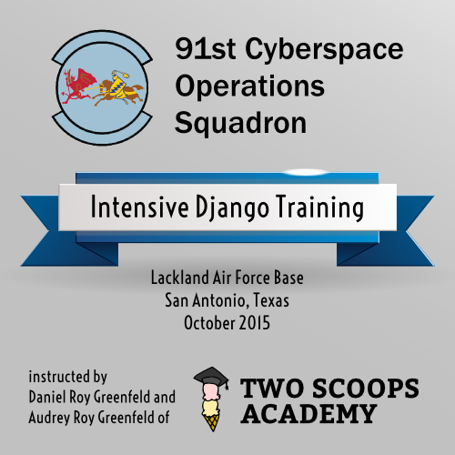For more info, see Intensive Django Training with the US Air Force, Daniel's detailed blog post about the training experience.