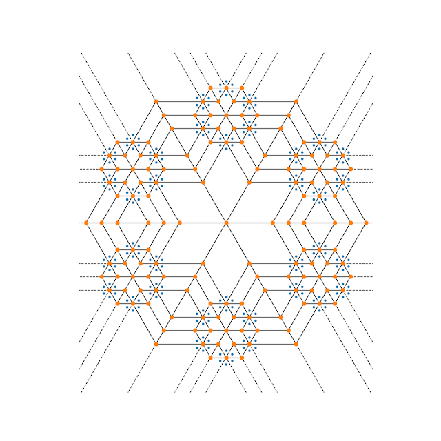 I started with Carlos Focil's mandalapy code, modifying the parameters until I had a design I liked. I decided to make the Voronoi diagram show both points and vertices, and I gave it an equal aspect ratio. Carlos' mandalapy code is a port of Antonio Sánchez Chinchón's inspiring work drawing mandalas with R, using the deldir library to plot Voronoi tesselations.